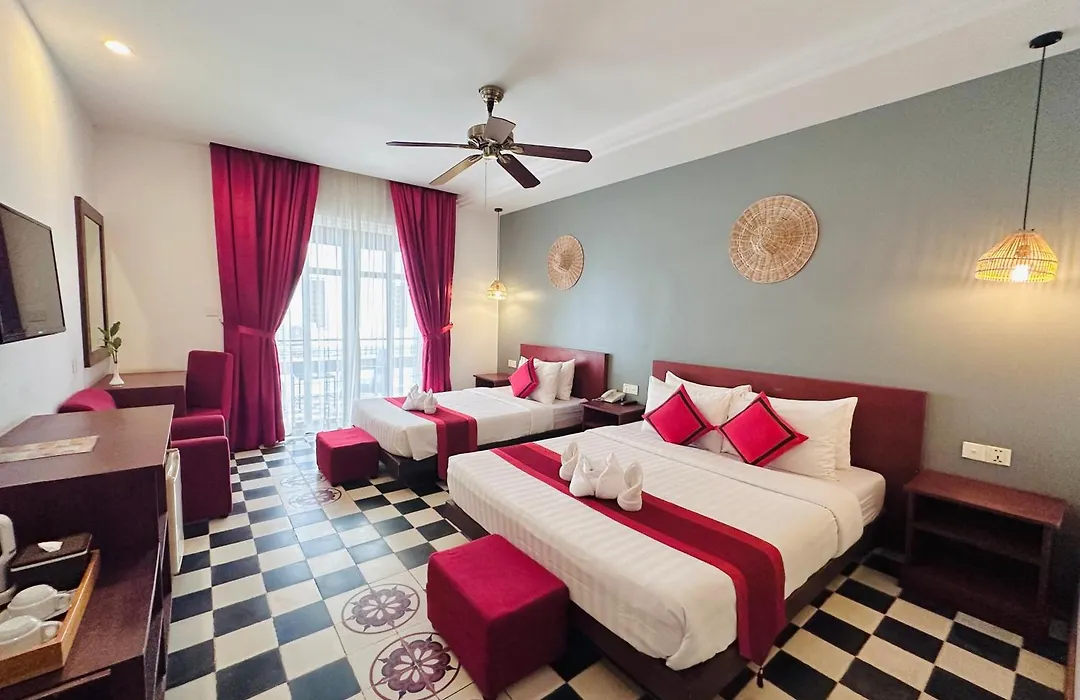 Located near the Taphul Village district, the hotel is only 1.4 km from the Pub Street. Pampering its guests with wellness experiences, the Kesor Spa is not far from the Mekong Angkor Palace. This property is set amidst gardens. The nearby shopping sights include the Siem Reap Market, which is a 22-minute walk away. The hotel is also 200 metres from VCE Station for es from Laos bus stop.